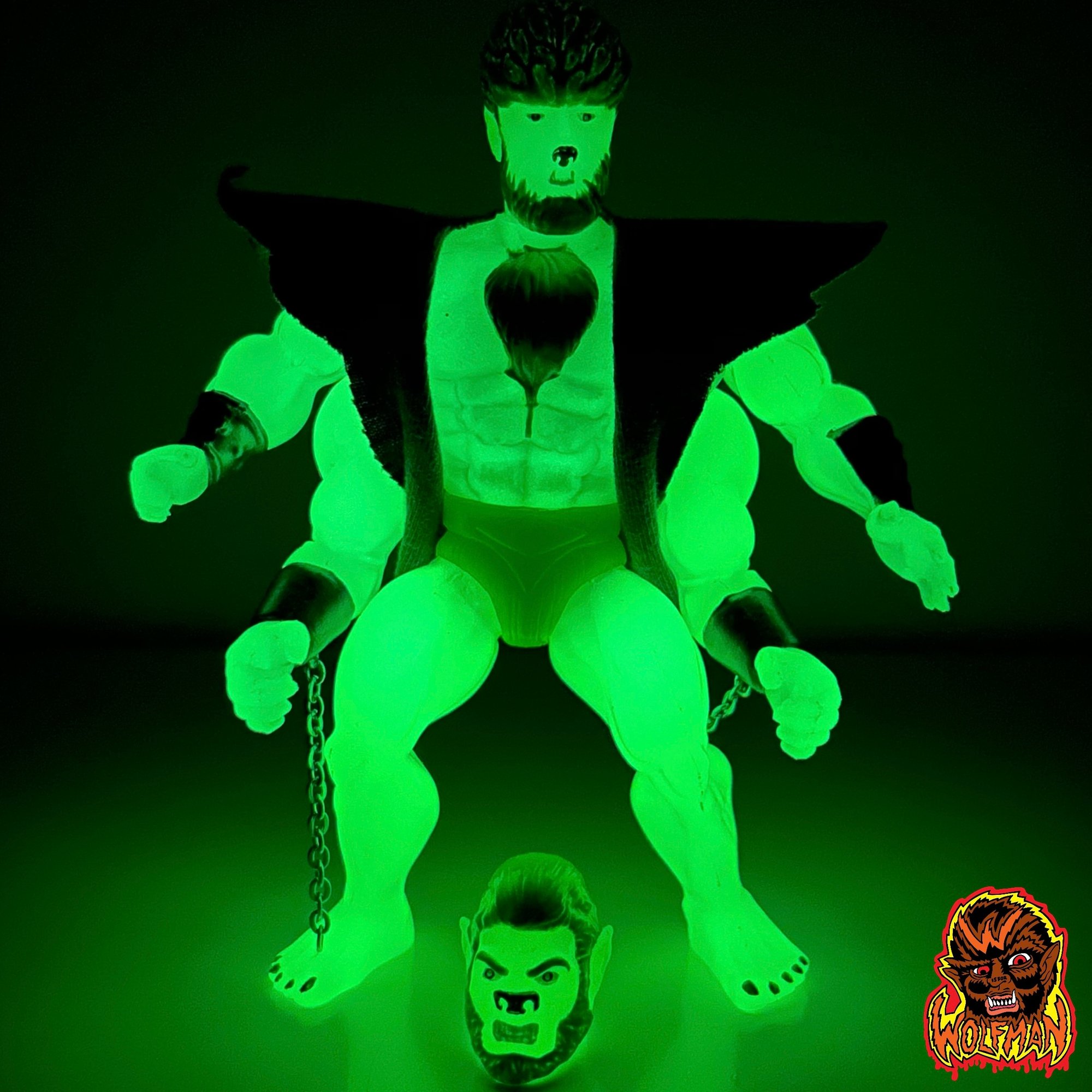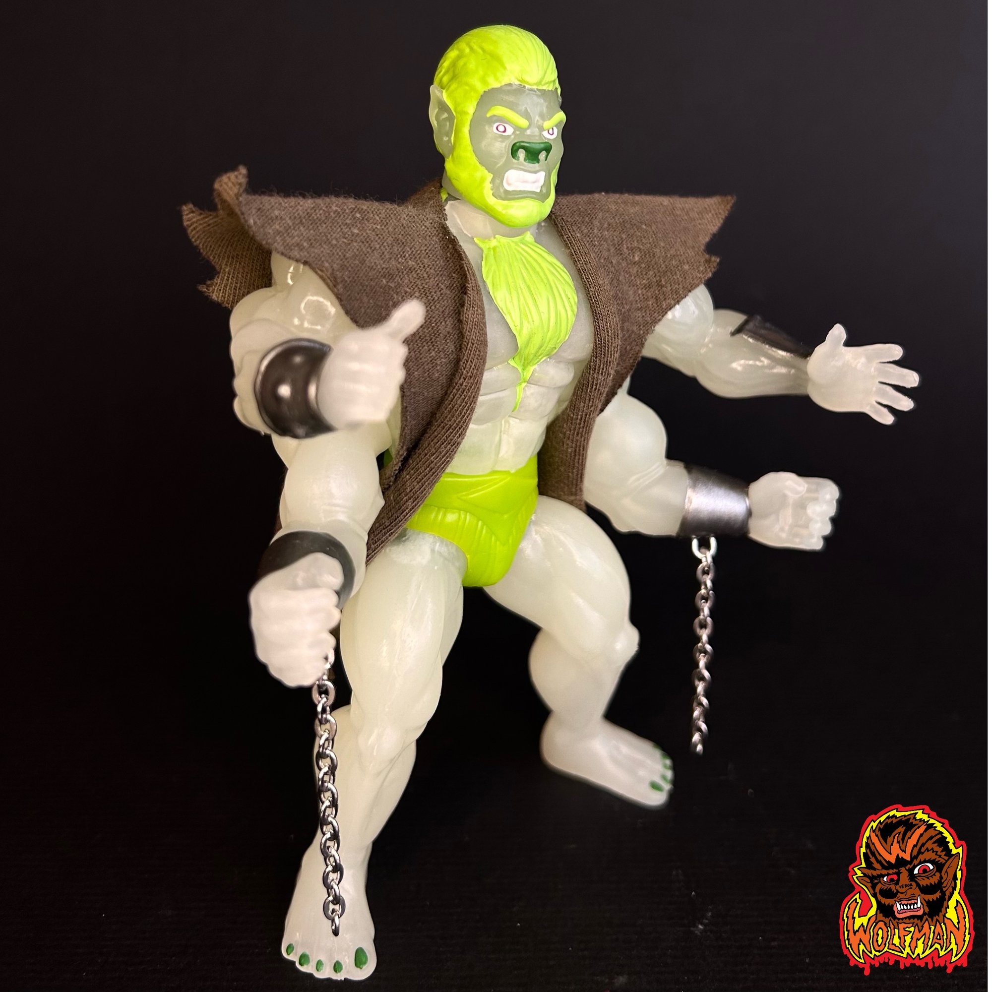 5.5” MOTU style action figure, 100% hand made (cast, paint, assembly), fully articulated in all 4 arms, waist, head and rubberband legs, one of a kind. Comes with removable cloth shirt and magnetic interchangeable head. One head based on the classic Universal monsters Wolfman, the other is a modded version of @migueleldor awesome mossman head.