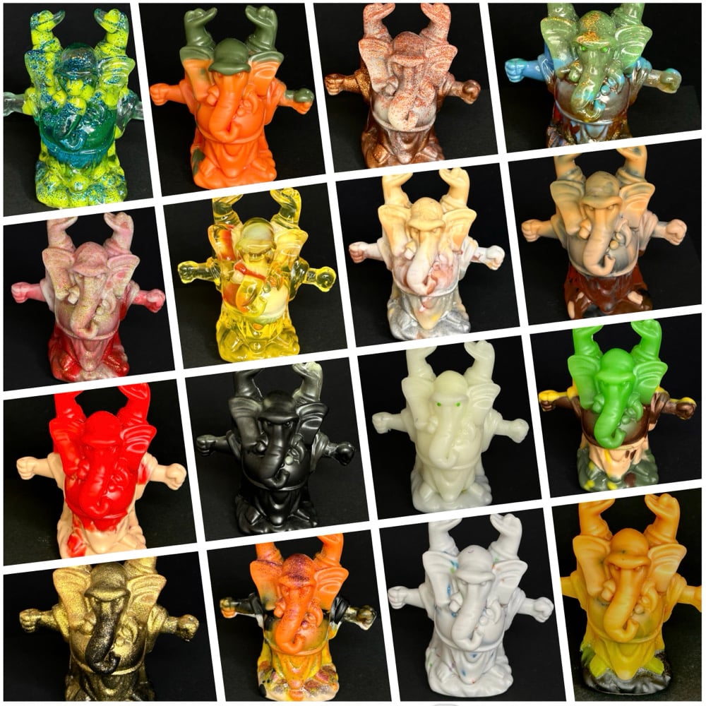 Every blindbag contains 1 unique mini Ganesh figure. I have made 23 different figures. All are approximately 2.5” (6 cm) tall, static and have their unique look and features. Some have glitter, others are translucent, some have a color changing or glow in the dark feature.