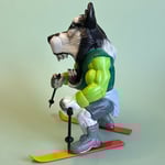 One of a kind, hand made custom action figure with articulation in arms and waist. Comes with removable ski gear.